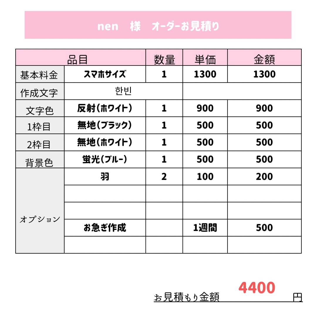 見積金額 4400円