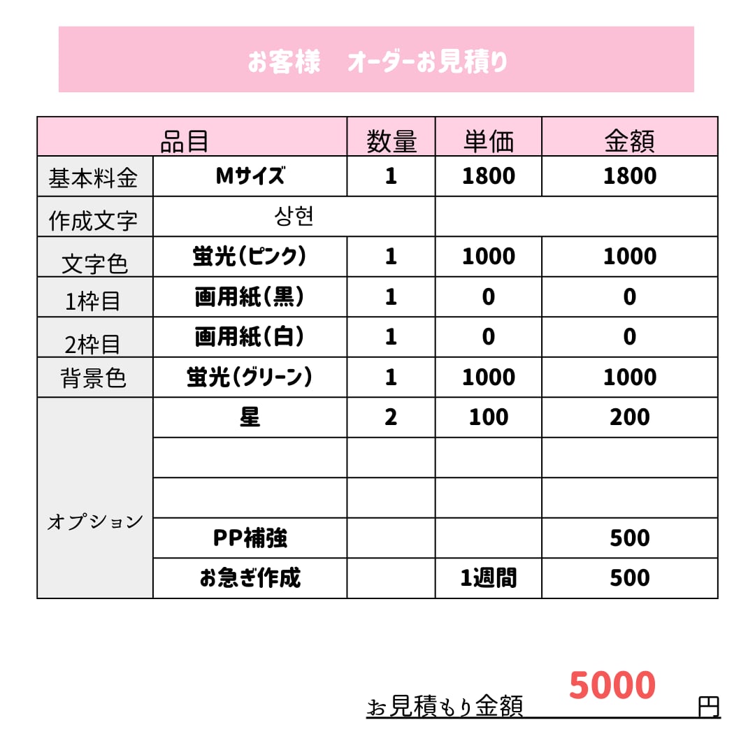 見積金額 5000円