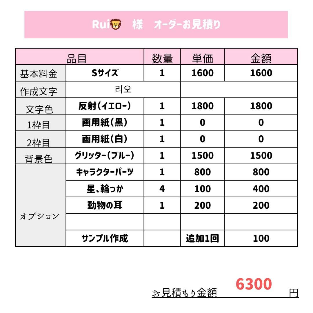 この度はオーダーいただきありがとうございます。
